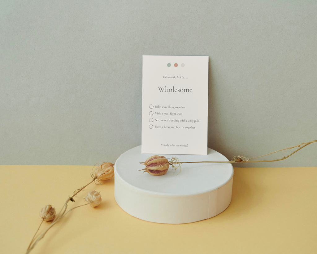 On the back of each activity card, there’s optional space to note when you did it, what you did and a small tick box to remind you to take a photo, creating a quiet record of the time you made.